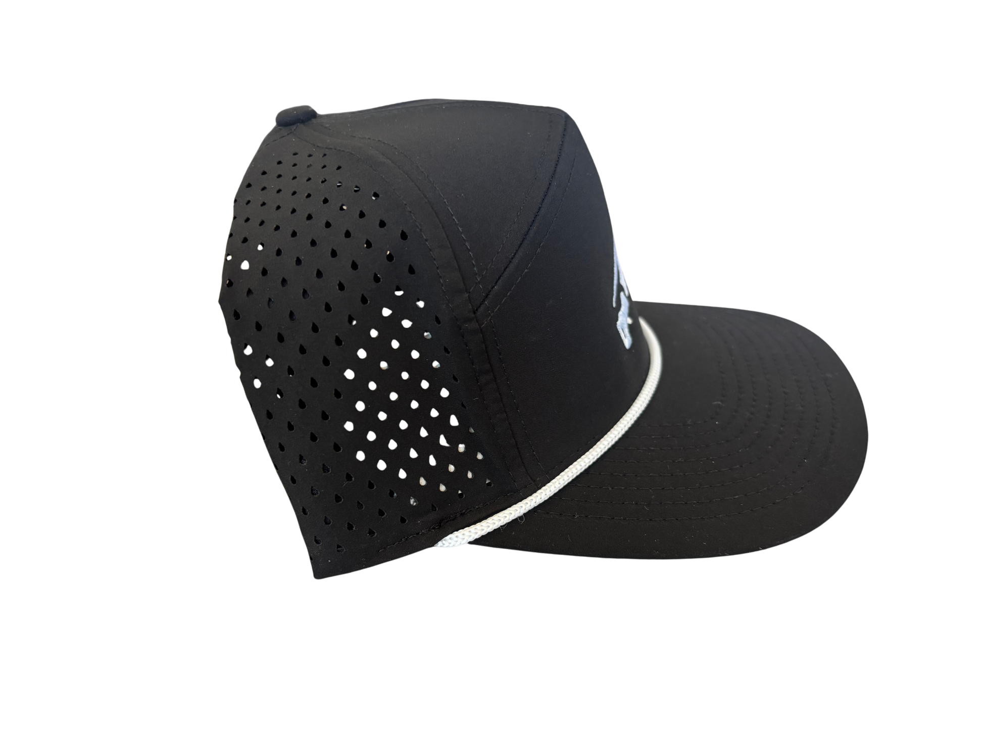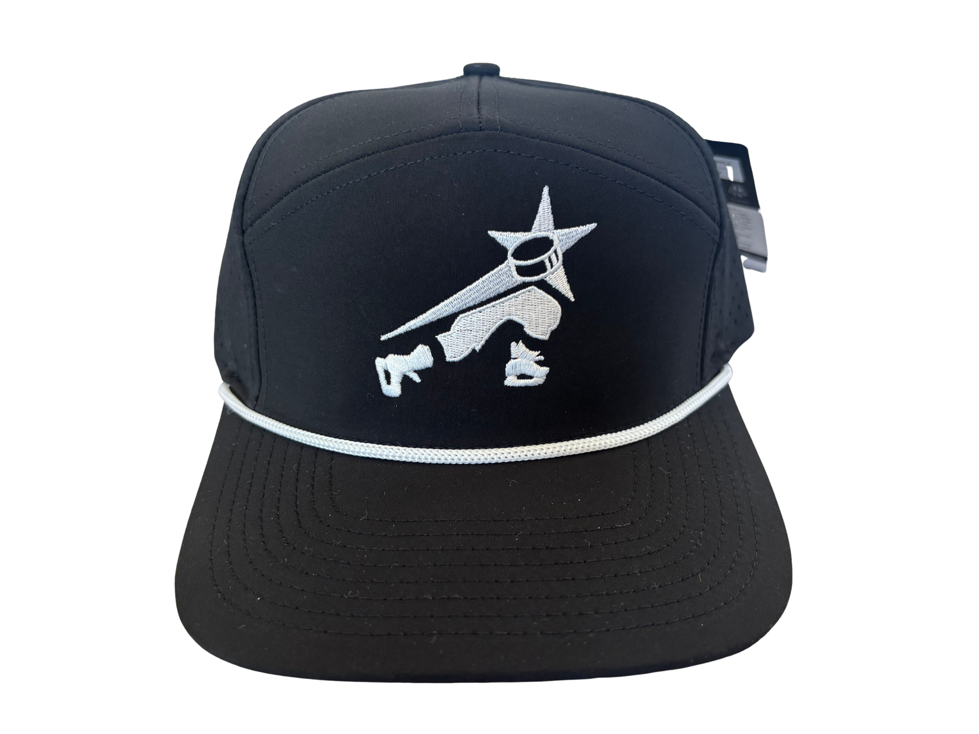 SKATING THAT TRANSLATES® SIX HAT SUPPLY CO TRADESMEN SIGNATURE ALL BLACK CUSTOMIZED WHITE ROPE ADDITION